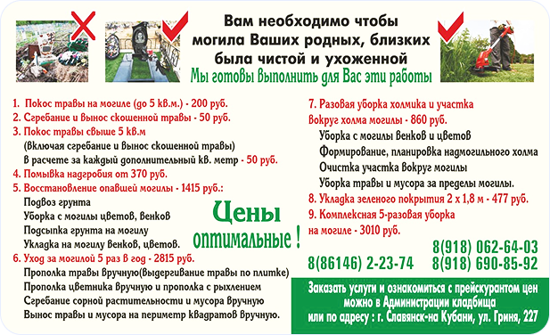 Для приобретения всего необходимого перечня ритуальных товаров по низким ценам (гроб, крест, покровцы, одежда для умерших, венки, ленты и т.д.).